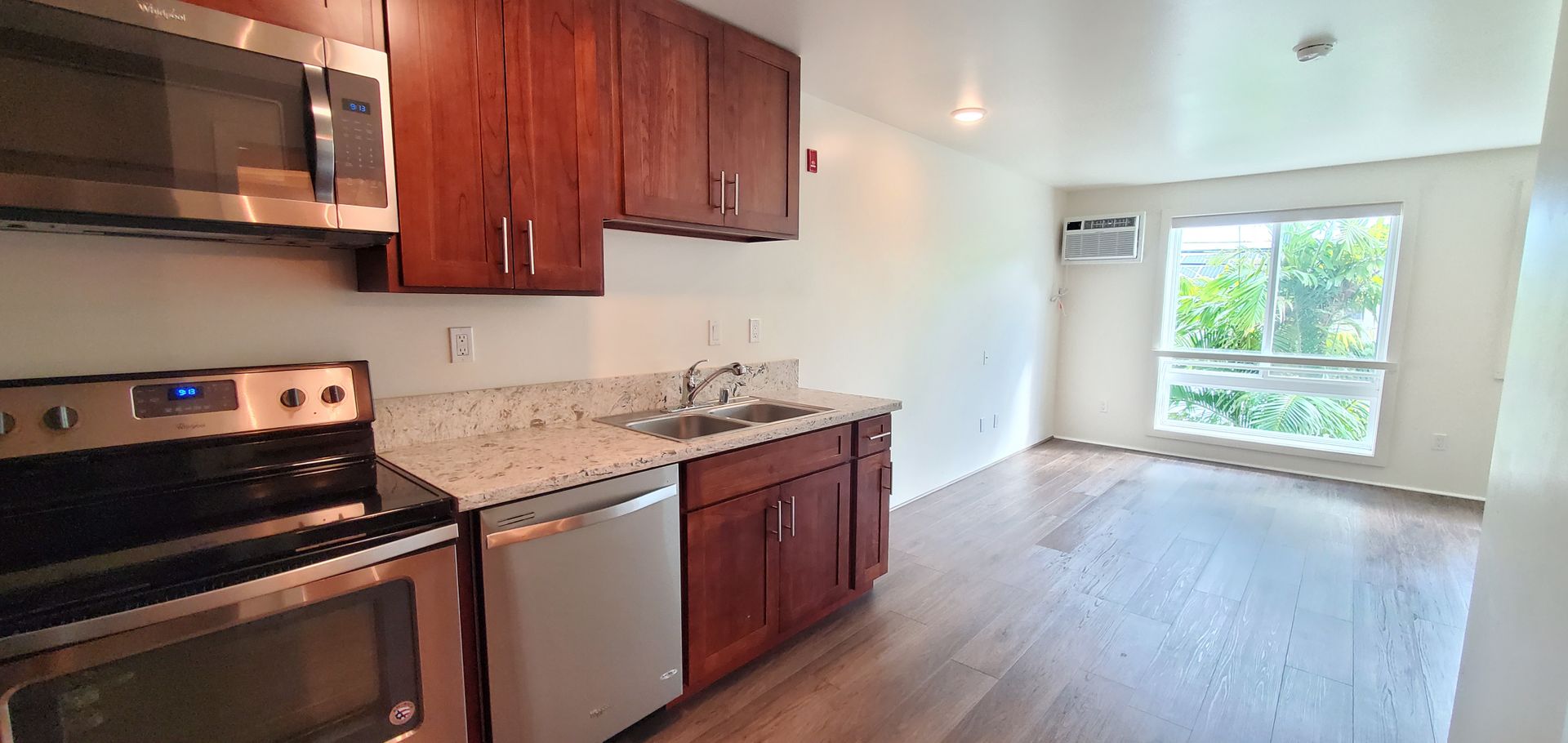 This is a studio unit on the 2nd floor in a secured building. Air conditioning, washer/dryer in unit along with stainless steel appliances and flooring throughout. It also includes roll down shades for extra privacy. Live in Kailua Town and appreciate all that it has to offer. Cute boutiques, Kailua Beach, Whole Foods, Target, and many local eateries -most in walking distance. Hale Maluniu has a picnic/grilling area and storage for bikes and surfboards. There is an EV Charging Station available as well.