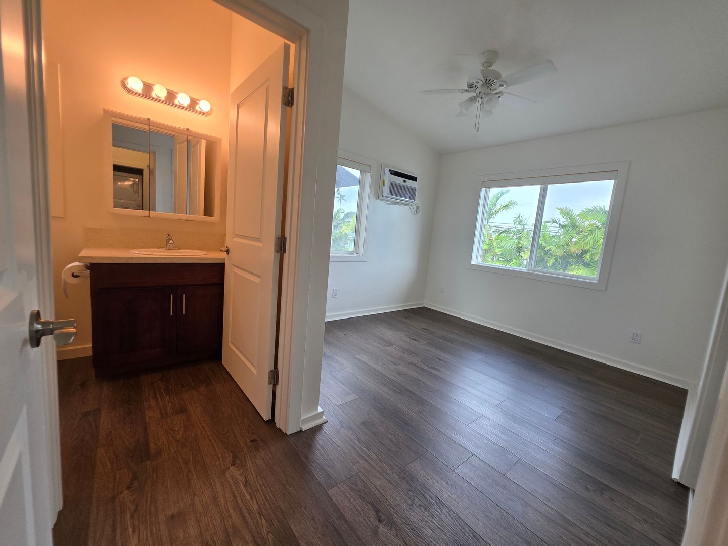 Spacious, 2-bedroom, 2 bath, 2 parking duplex unit with high ceilings available now. This unit has stainless steel appliances, including a dishwasher. Each room has an AC unit, and the unit includes a washer/dryer. Located in Kailua, very well-kept and convenient to many shops and eateries.